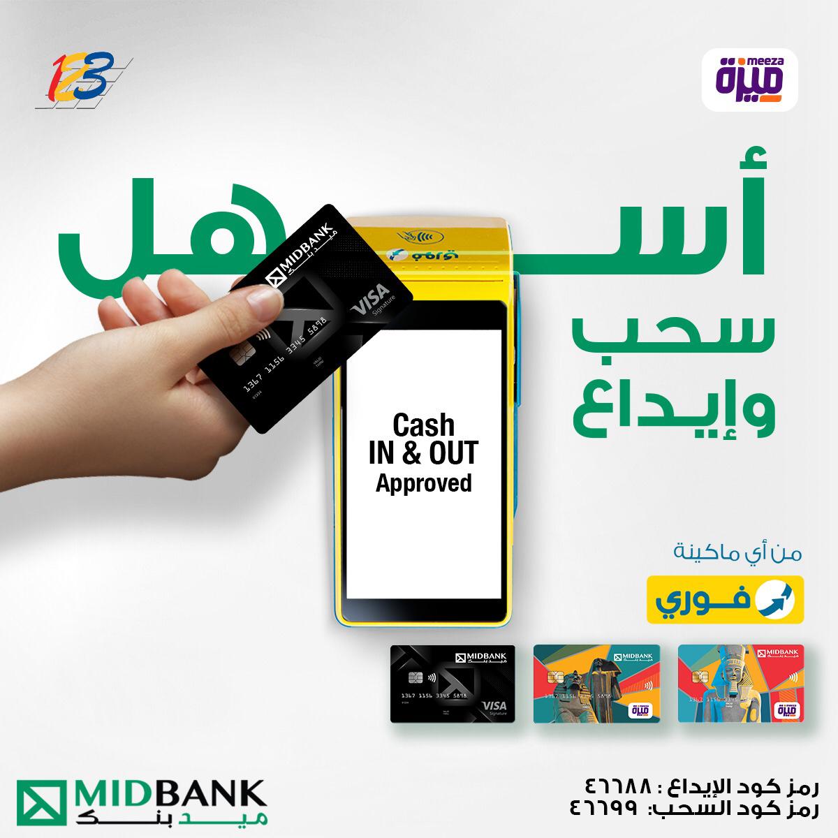 وذكر البنك أن عملاء ميدبنك سيتمكنوا من إجراء خدمات السحب والإيداع Cash in & Cash out عبر ماكينات فوري التي تغطي كافة أنحاء مصر، والمتواجدة بالمولات التجارية، والسوبر ماركت، والأكشاك، وذلك باستخدام بطاقات ميدبنك "ميزة" للخصم المباشر والمدفوعة مقدماً، وبطاقات فيزا الائتمانية بكافة أنواعها، وبالتالي تساهم هذه الخدمة في سداد مديونية البطاقة الائتمانية بسهولة و يسر.