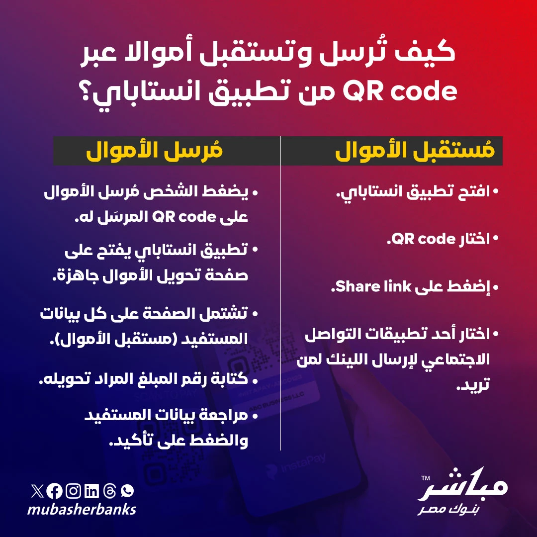 أتاح تطبيق إنستاباي خدمة جديدة لإرسال واستقبال الأموال عبر رمز الاستجابة السريع QR code، وذلك بهدف منع الأخطاء التي يقع فيها العملاء أثناء كتابة البيانات.